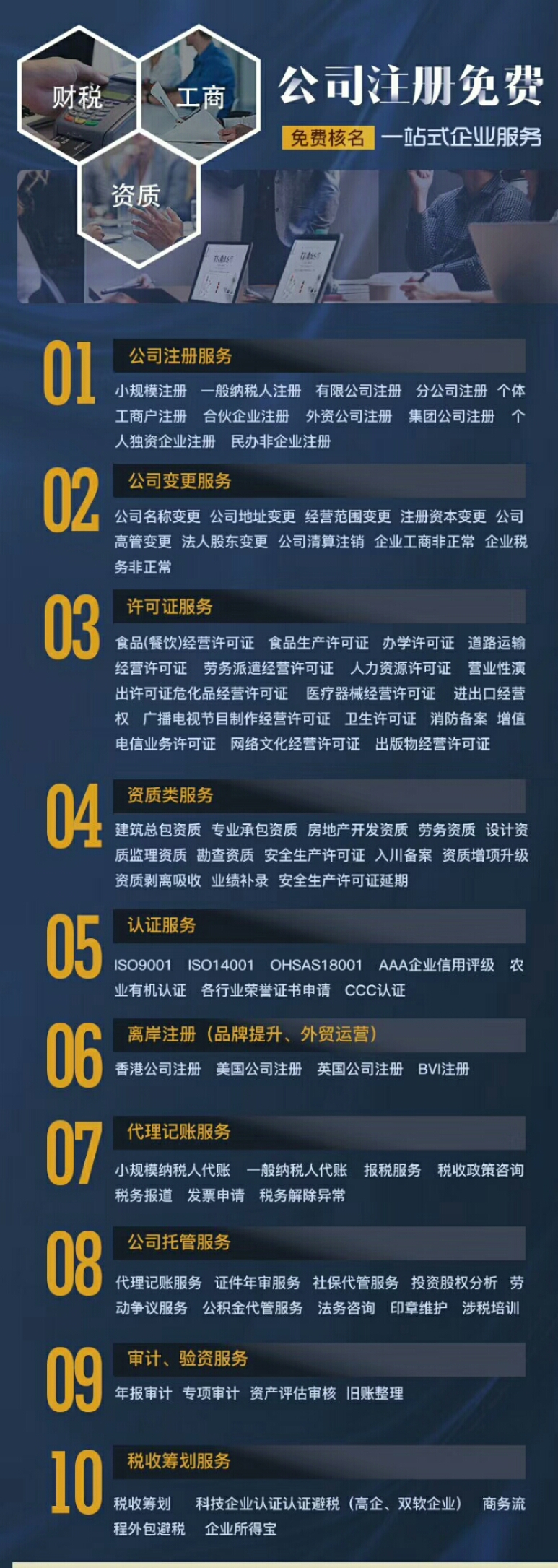 工商注册/注销、税务服务、资质代办、疑难处理,代理记账